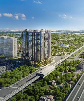 Vị trí dự án nằm gần trục Vành đai 3, tạo điều kiện thuận lợi để kết nối với trung tâm hành chính mới và các khu vực trọng điểm của thành phố.